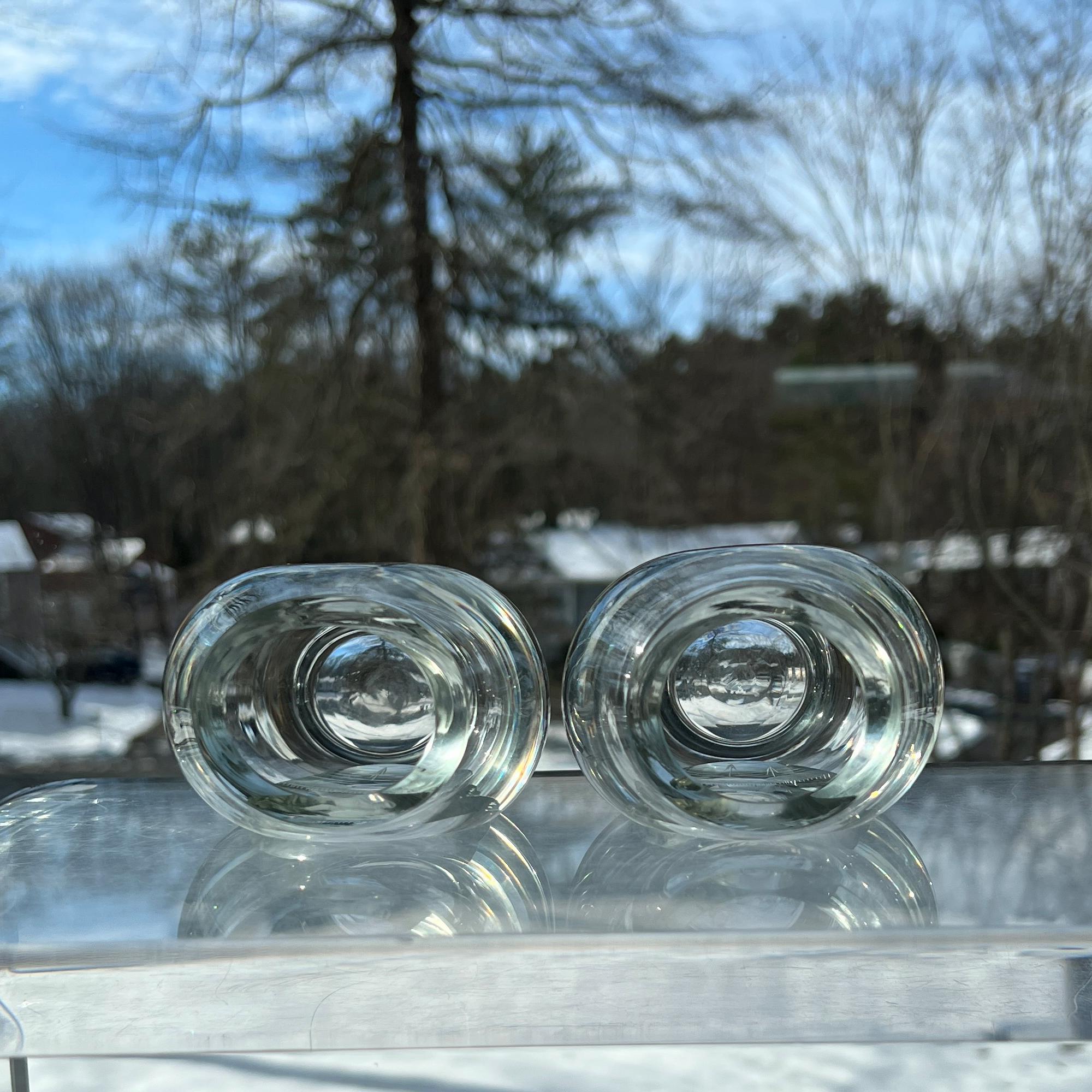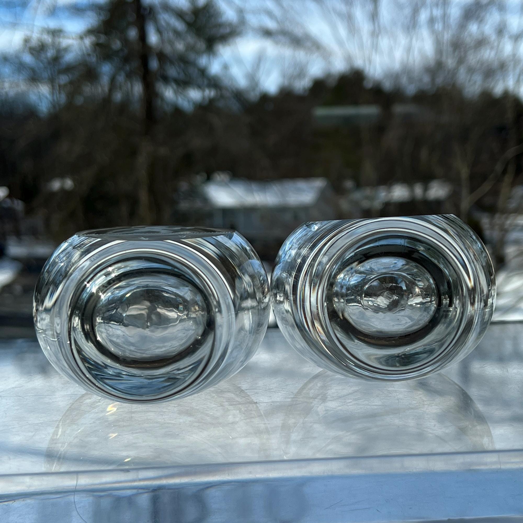 Each vase is 5 inches tall and weighs 1.5 pounds. They are made from what Smålandshyttan calls, "half crystal," and they are in very good vintage condition.